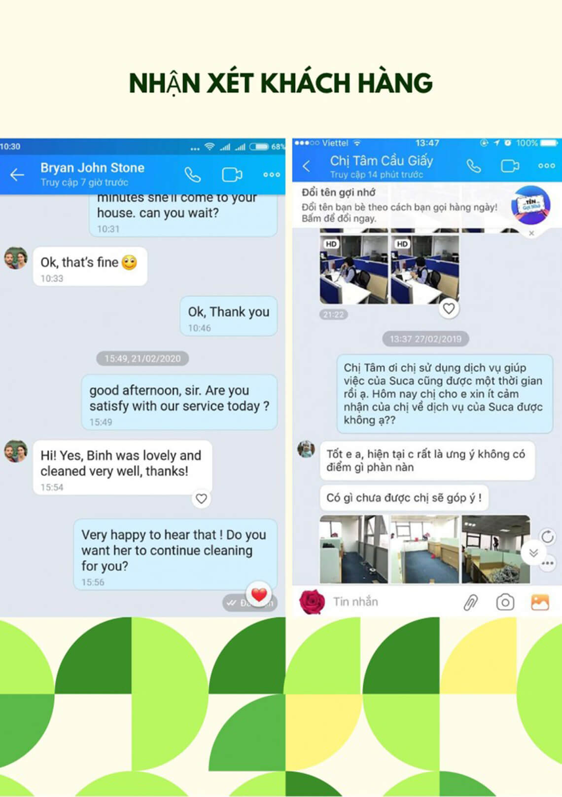 Với các dịch vụ dọn dẹp vệ sinh, nấu ăn, trông trẻ, giúp việc theo giờ, giúp việc ở lại…